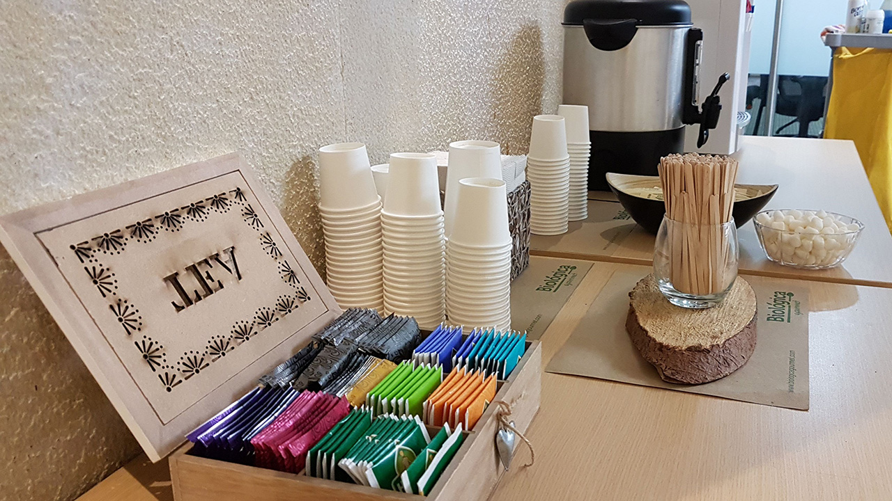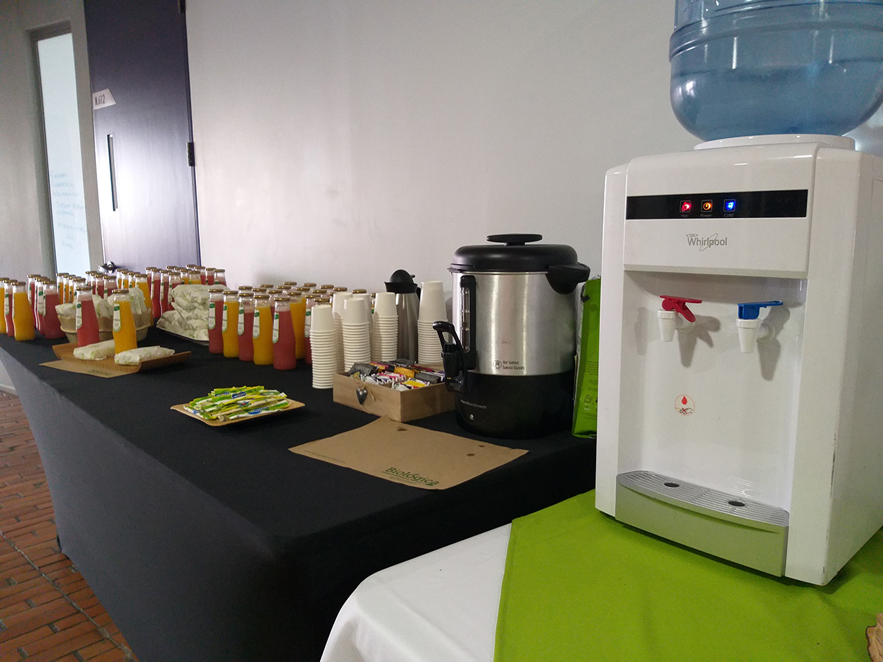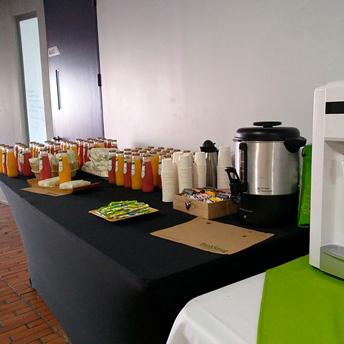 BebidasEstación de café, té frutas frescas y agua acompañado con galletas (valor por persona).