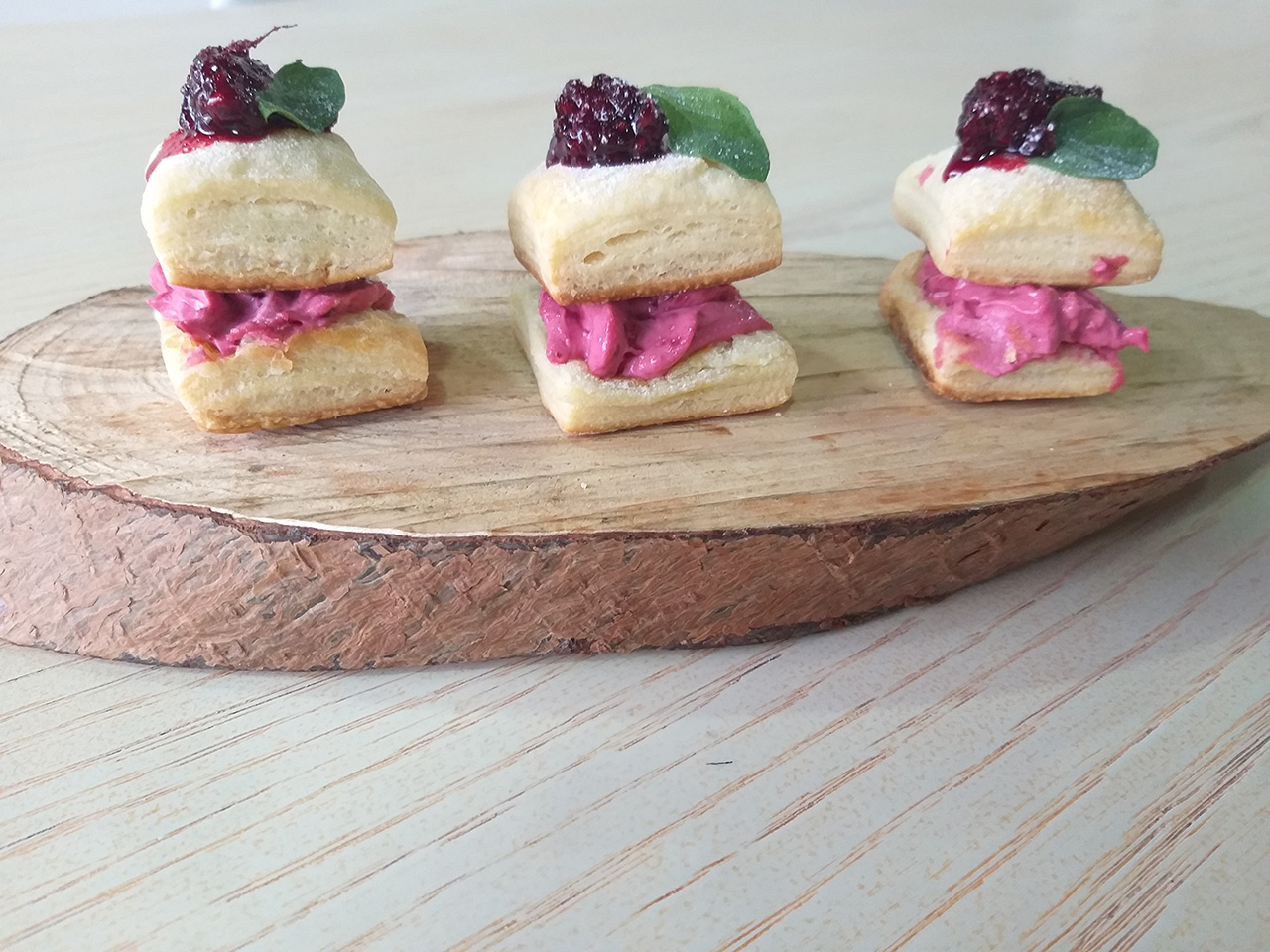 PasabocasBlinnis de queso, mango y pollo.