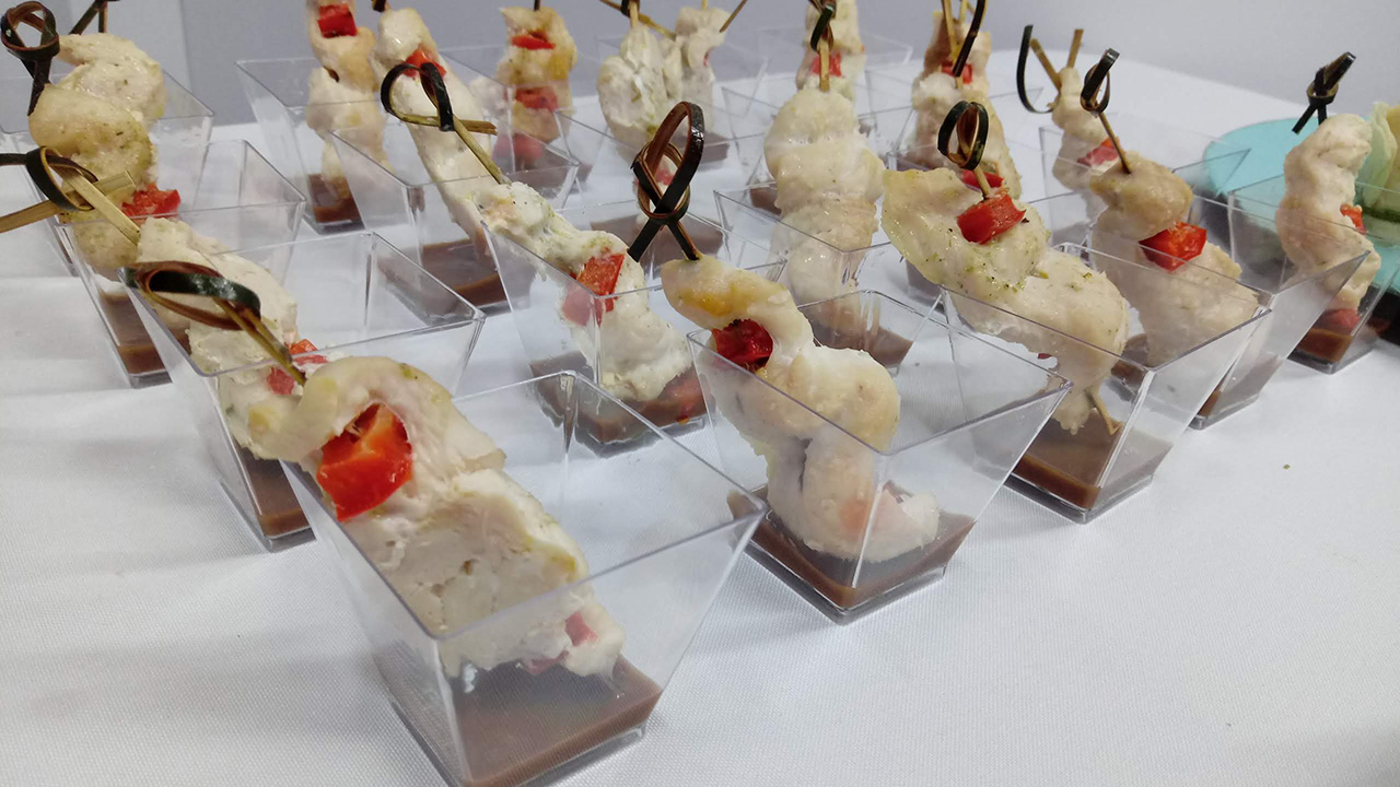 PasabocasBrochetica de camaron a la parmesana con salsa tátara.