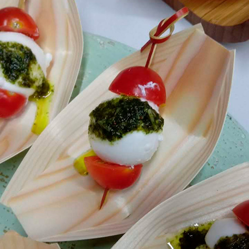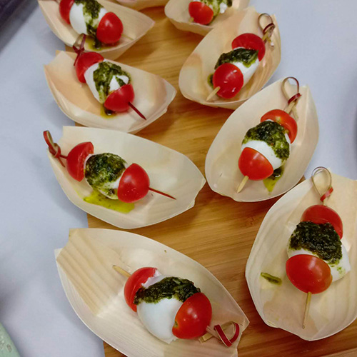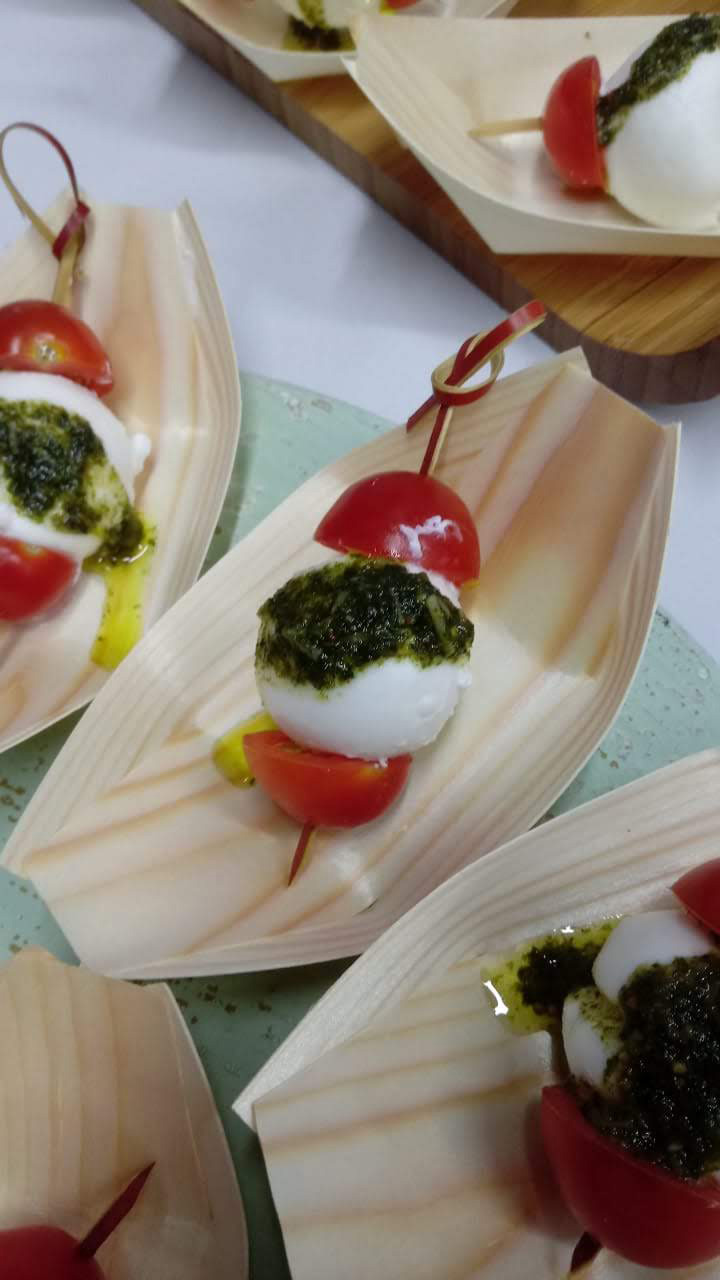 PasabocasTomate cherry, queso y pesto.