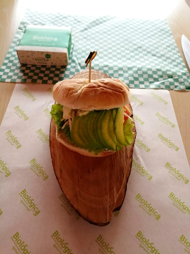 RefrigerioCon humus de garbanzo, aguacate y brotes de alfalafa y jugo natural.