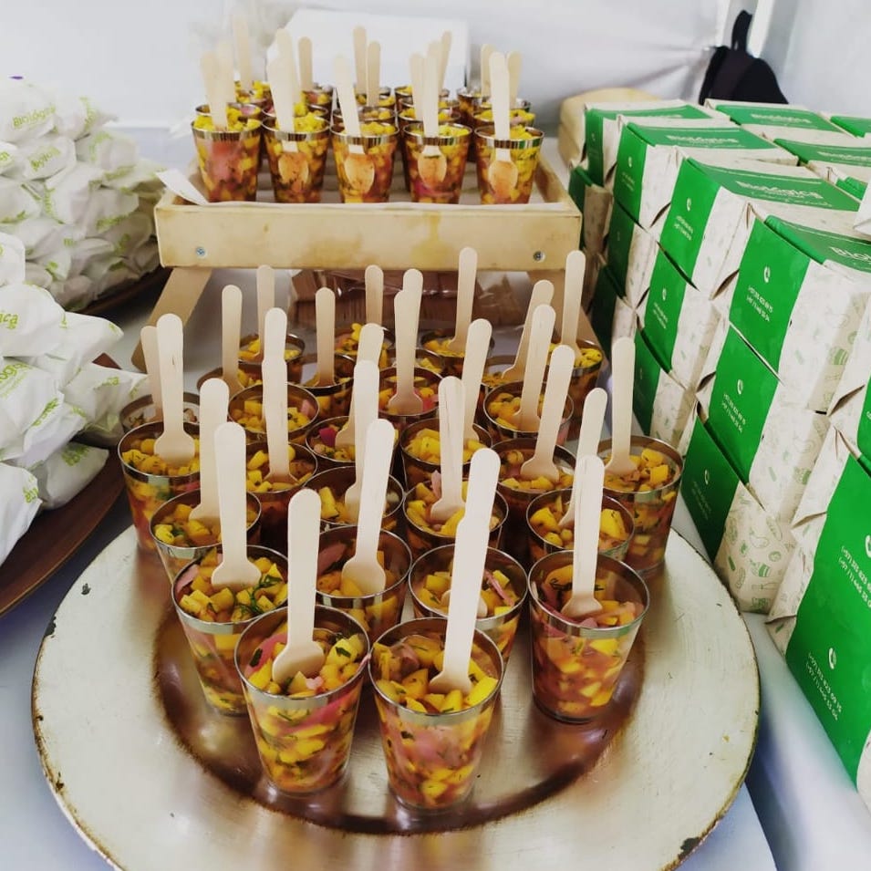 Utilizamos cubiertos, empaques y envases 100% reciclables o biodegradables.